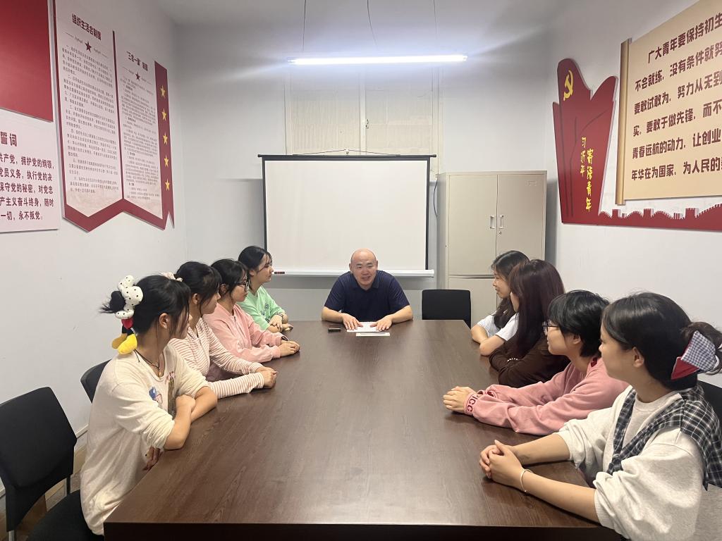 为引导新生团员坚定理想信念、筑牢思想根基,尽快融入大学学习生活,9月19日上午,学院党委副书记屈川深入学生社区,为2025级新生团员带来了一场主题鲜明、内容丰富的理想信念教育讲座。