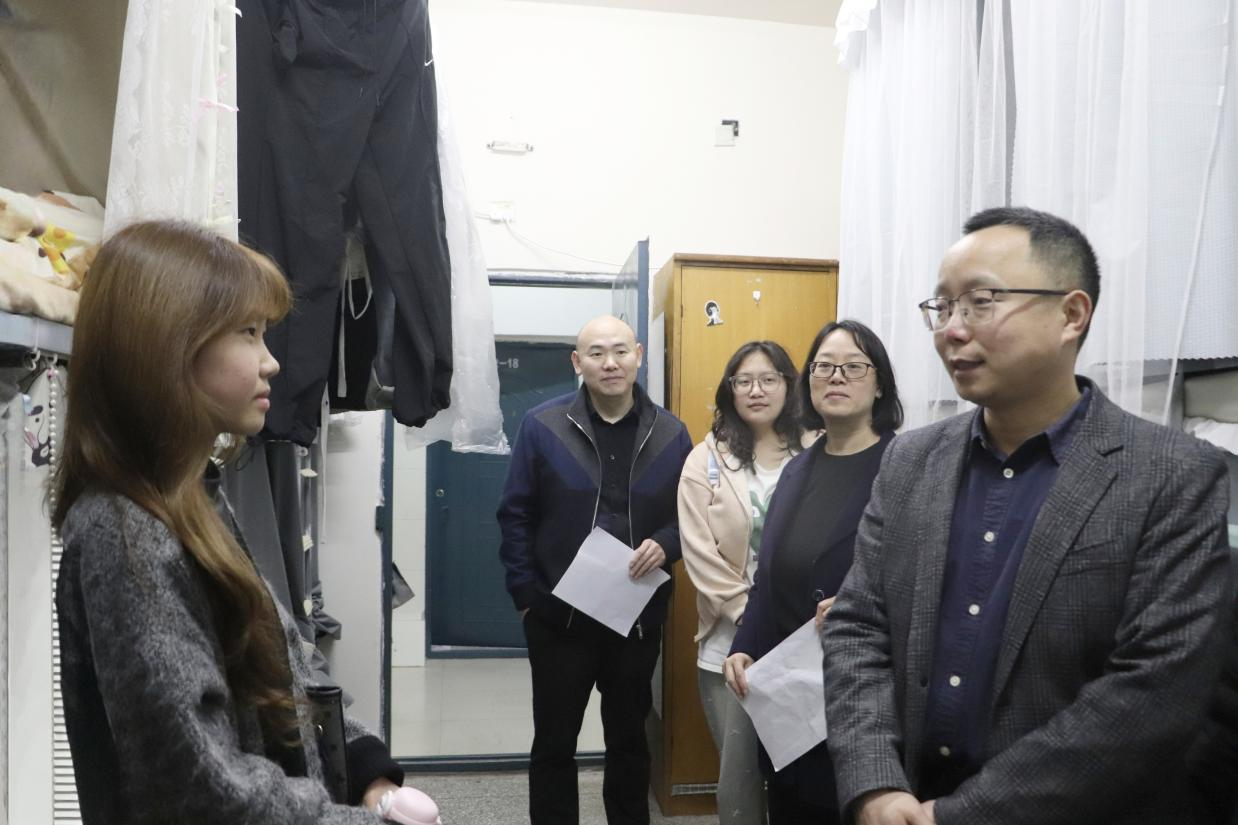 座谈会结束后,陈光平深入学生寝室,实地查看学生住宿环境,与同学们亲切交流。他详细询问大家的学习生活情况、寝室人际关系以及存在的实际困难,认真听取同学们对学校管理服务工作的意见建议。陈光平叮嘱同学们要互帮互助、和睦相处,营造积极向上的寝室氛围,同时注意身心健康,合理安排学习与休息,以饱满的精神状态投入学习生活。